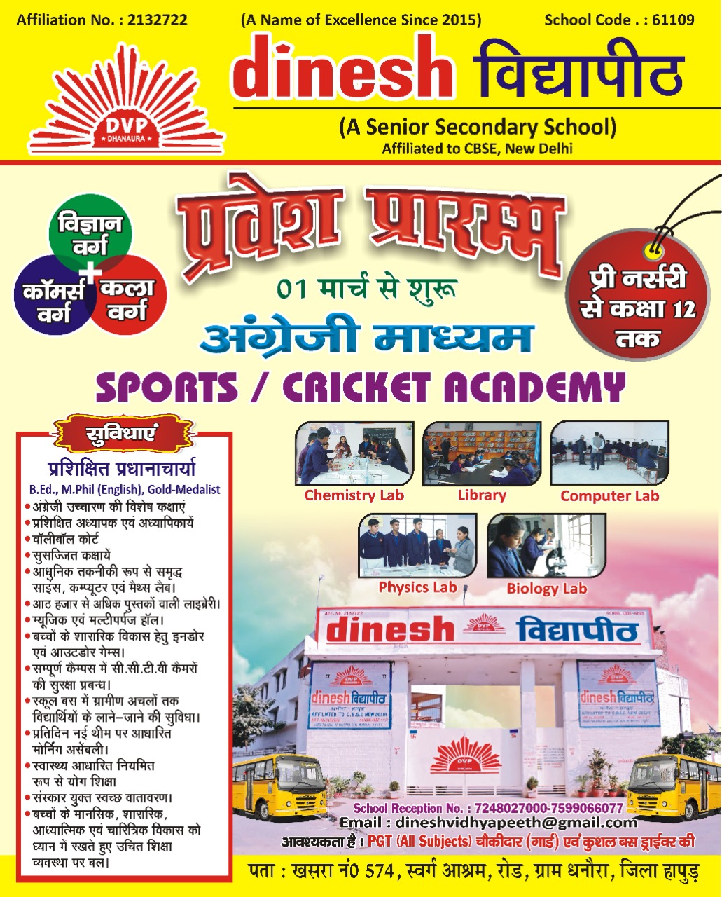 To provide a school that works for all students – academically -socially –economically and to be a platform for nurturing and blossoming young minds. With this perspective in mind DINESH VIDHYAPEETH was established in the year 2016 under the aegis of VICHITRA DEVI MEMORIAL TRUST.